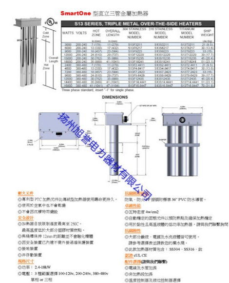 揚(yáng)州旭譽(yù)生產(chǎn)提供的三組式鐵弗龍加熱器采用國(guó)際檢驗(yàn)標(biāo)準(zhǔn),確保電器性能安全,具有可設(shè)計(jì)多種結(jié)構(gòu)形式,如:螺旋型、L型、U型、W型、蚊香型、 組合型等。
